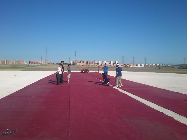Como ya sabreis, el pasado domingo estuvimos instalando la nueva pista de vuelo con moqueta, y no nos dió tiempo a terminar. Por esta razón vamos a finalizar su instalación el próximo domingo.